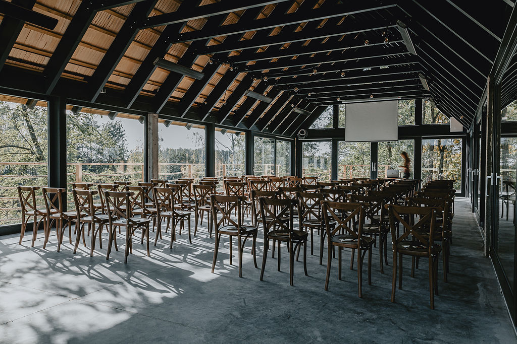 - Sala konferencyjna (całoroczna) dzielona na dwie części, mieszcząca się w budynku restauracyjnym o pow. 175m2