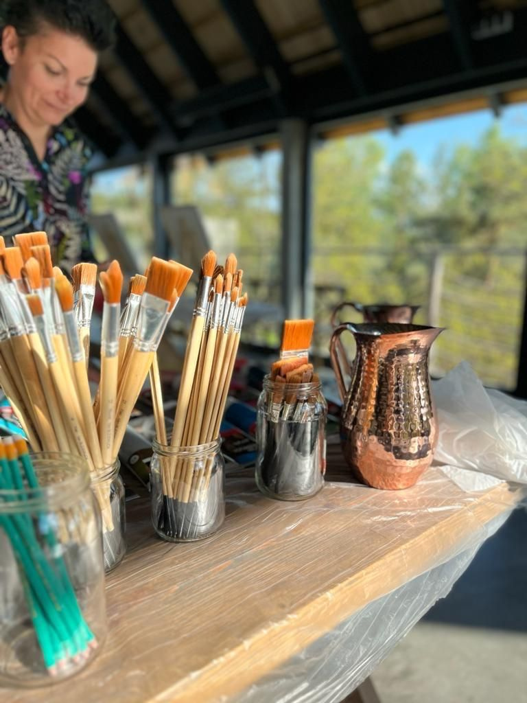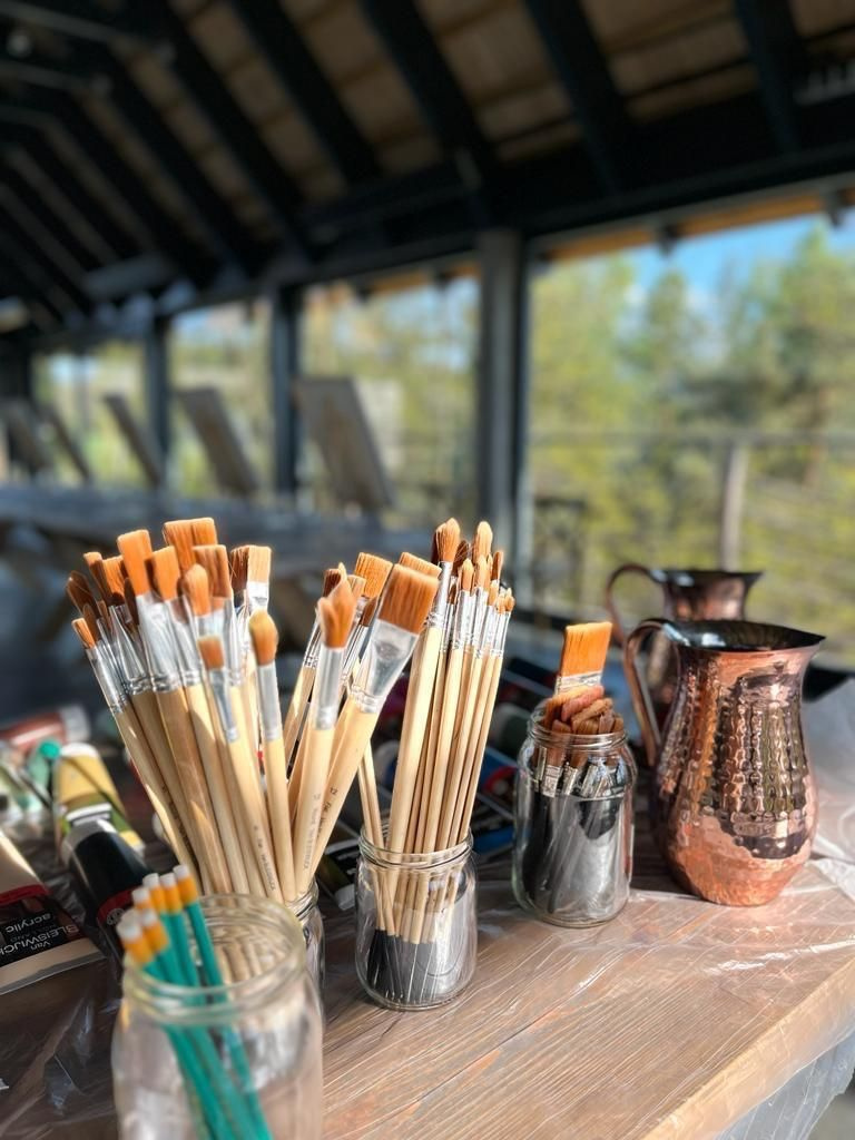 - Zestaw do malowania: farby akrylowe, pędzle sztaluga, paleta, fartuszek